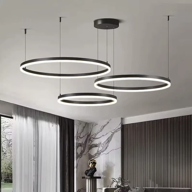 Підвісна люстра на три led кільця у чорному каркасі 80+60+40 см