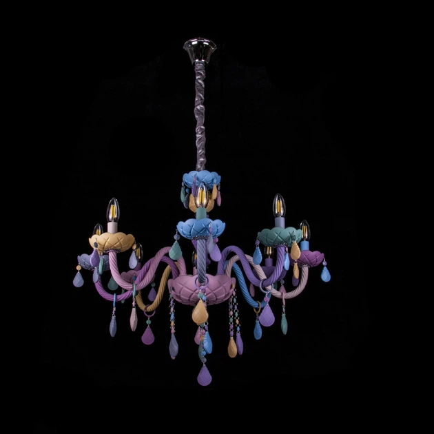 Скляна люстра свічка на 8 лампочок з різнокольоровими ріжками 0313A/8