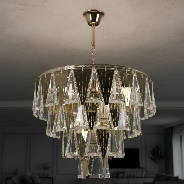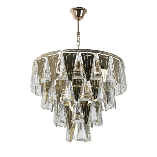 Підвісна люстра кришталева Sirius з чотирма ярусами під шість ламп Е27 золотиста IP20 B E1863/6