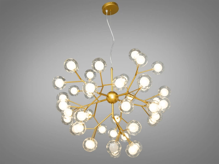Люстра із прозорими матовими кулями на 45 ламп золото сатин 887-45B GD
