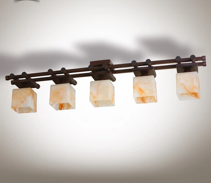 Люстра 5-ти лампова металева з деревом у зал, спальню, кухню, передпокій 19705
