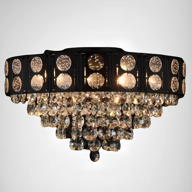 Люстра стельова VALESO з кришталевим плафоном під дев'ять ламп Е14 чорна IP20 V 9028/9 BK