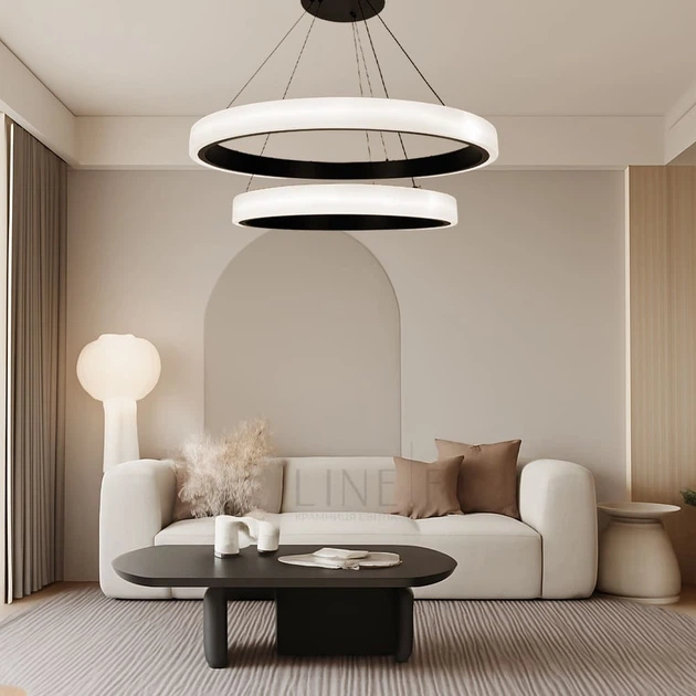 LED люстра підвісна у подвійному чорному кільцевому корпусі 70+50 см | Line F | Арт. MJ313-700+500 BK