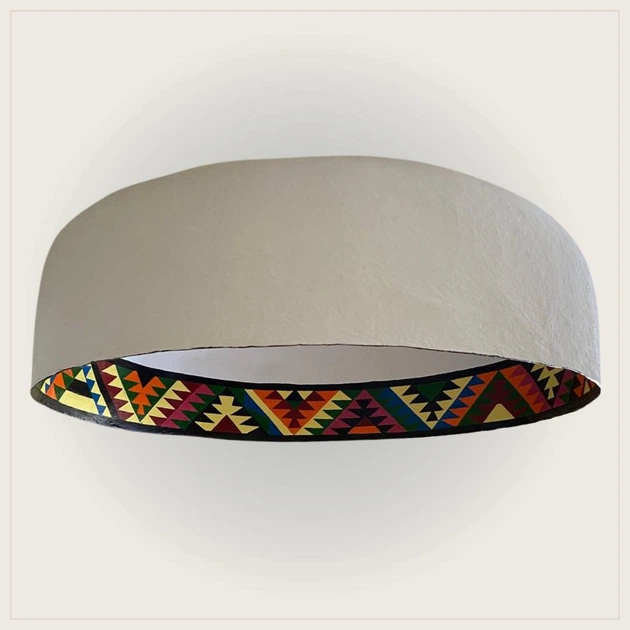 Люстра стельова ручної роботи Ритми Гуцулії D80 пап’є-маше світлодіодна (LED) 60Вт біла з художнім розписом всередині