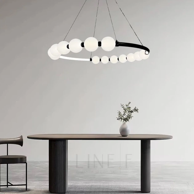 Чорна люстра Nordic Pearl з плафонами-перлинками 80 см | Line F | Арт. SG33-800 BK