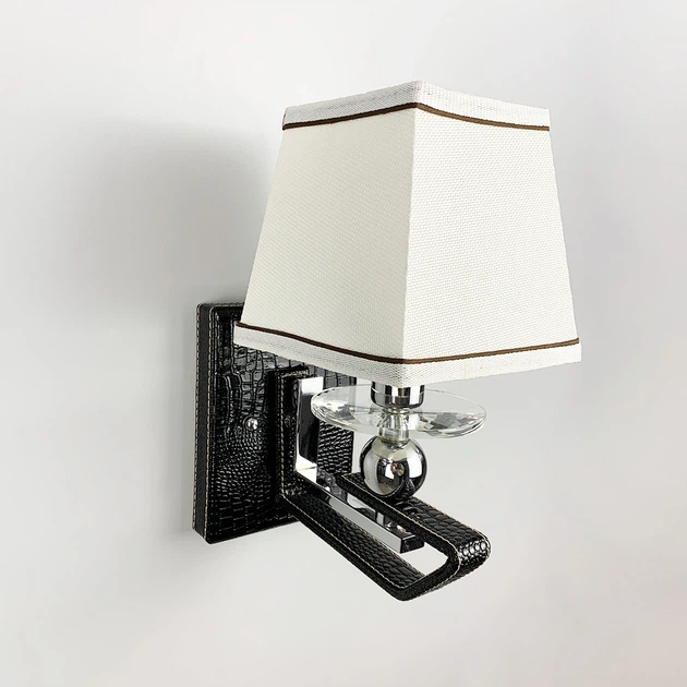 Бра з класичним тканинним абажуром та чорною екошкірою Line.FS 1449/1 BK