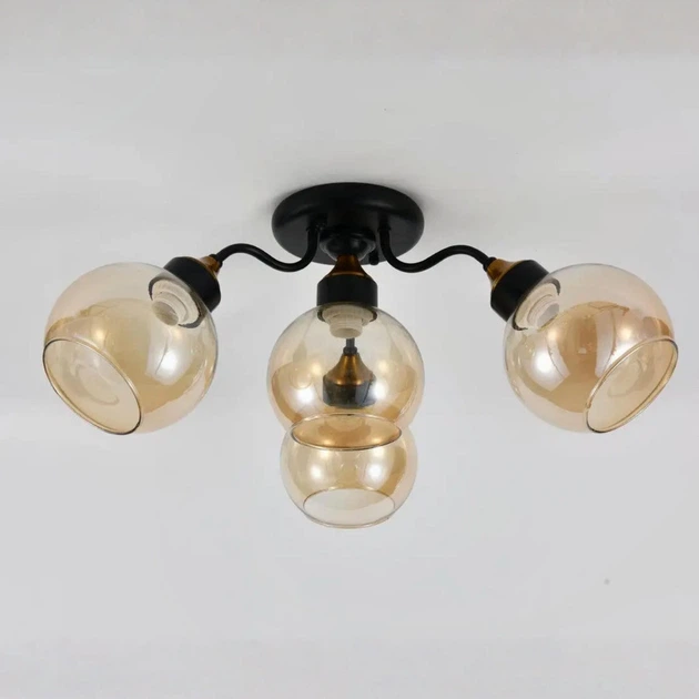 Стельова люстра Sirius на чотири скляні плафони під лампу Е27 чорна IP20 L0014-3+1 BK+Wood