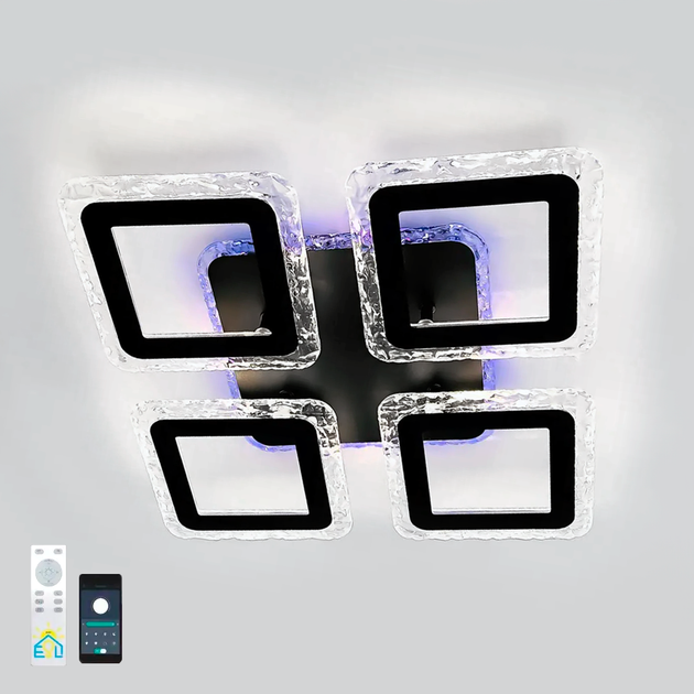 Керована світлодіодна LED люстра Esllse ROOM ICE RGB 70W 4S чорна 38575мм з пультом і керуванням зі смартфона APP BLACK