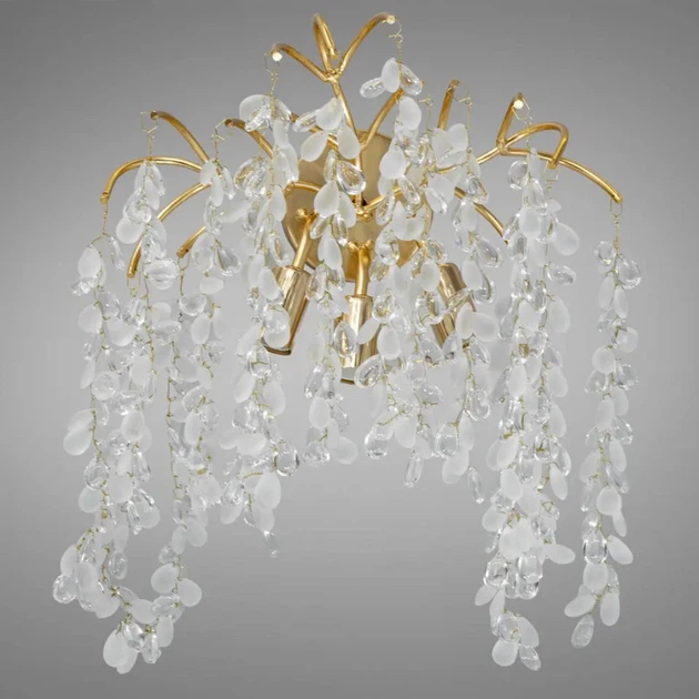Настінне бра Diasha з кришталевими підвісами під три лампи Е14 золотистого кольору IP20