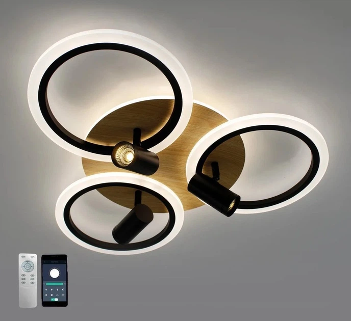 Керована світлодіодна люстра з пультом та додатком WOODY 70W 3LR-APP-582х115-BLACK/WOOD-220-IP20