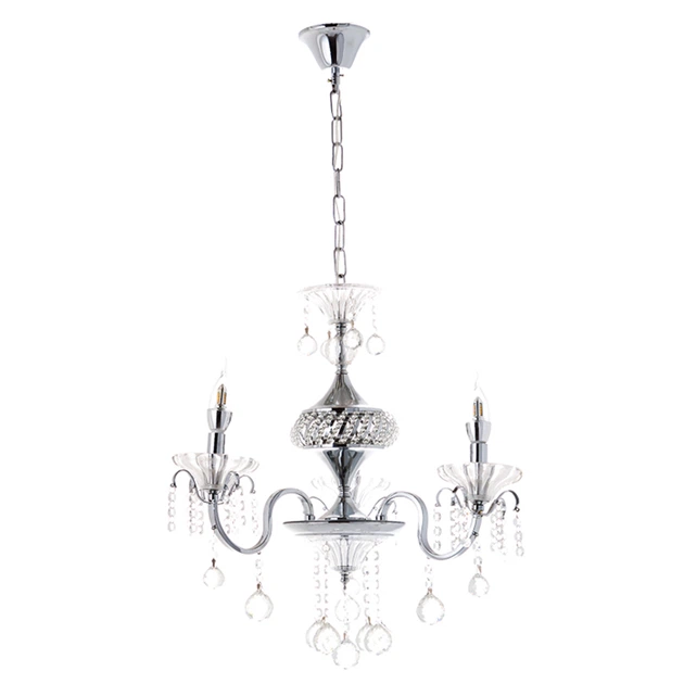 Люстра класична кольору хром зі скляним декором і 3 прозорими плафонами ELISEY (OU020/3/chrom)