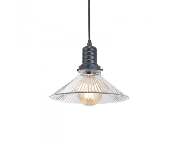 Підвісний Ретро світильник із ребристого скла Cone R Black (Clear Jazz Collection)