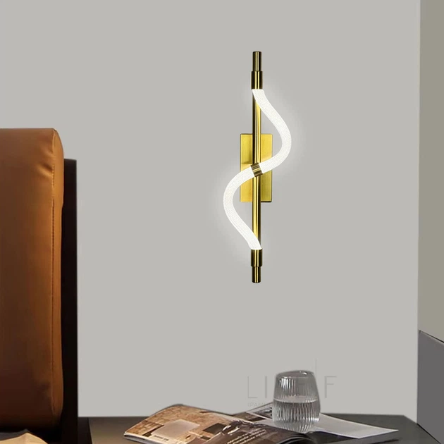 Бра з оплетеним неоном у латунному корпусі 40 см | Line F | Арт. W 201/400 AB