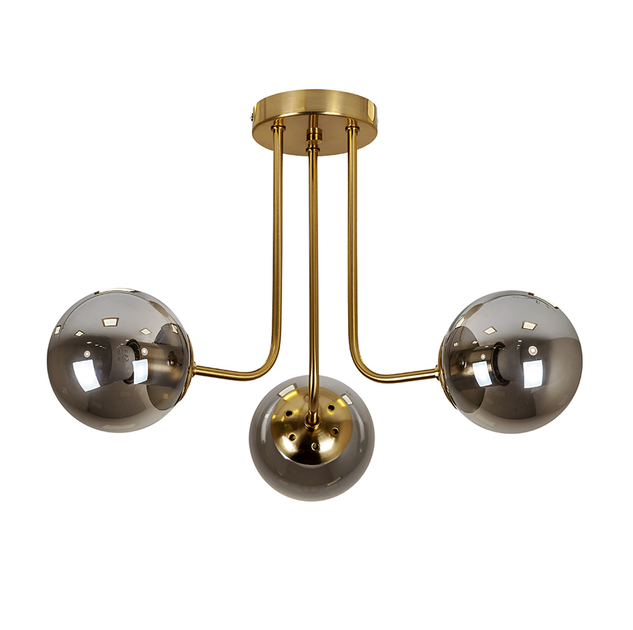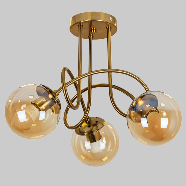 Стельова золота люстра з 3 коричневими плафонами-кулями "Triple Glow "(52-9903-3 GOLD+BR)