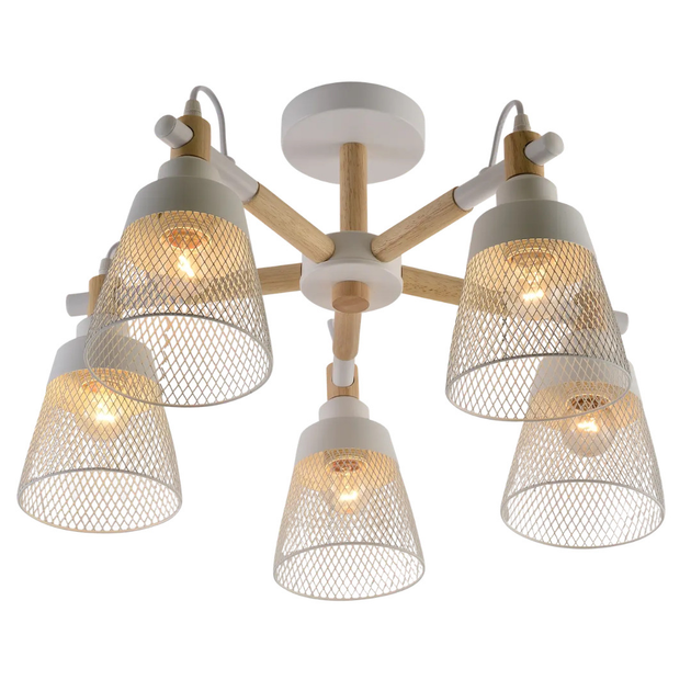 Стельова люстра Interees на п'ять плафонів в сітку під лампу Е27 біла IP20 V XA1557-5 WH+WOOD
