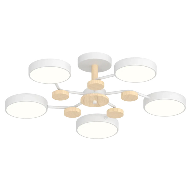 Стельова світлодіодна люстра 90W Interees без пульта д/у 3000K/4200K/6000K біла IP20 XI3310-5 WH+WOOD