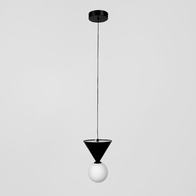 Чорний підвісний світильник із конусним дизайном та білим плафоном
