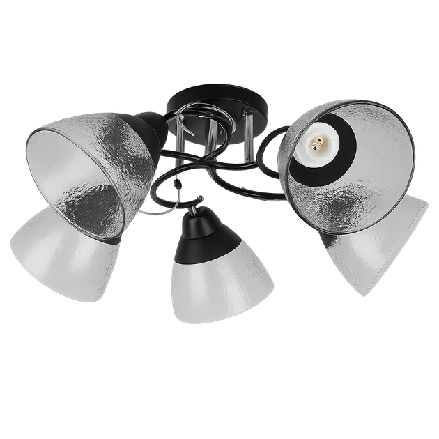 Люстра стельова з прозорими скляними плафонами, чорний хром на 5 ламп класична Sneha (9968669158/5)