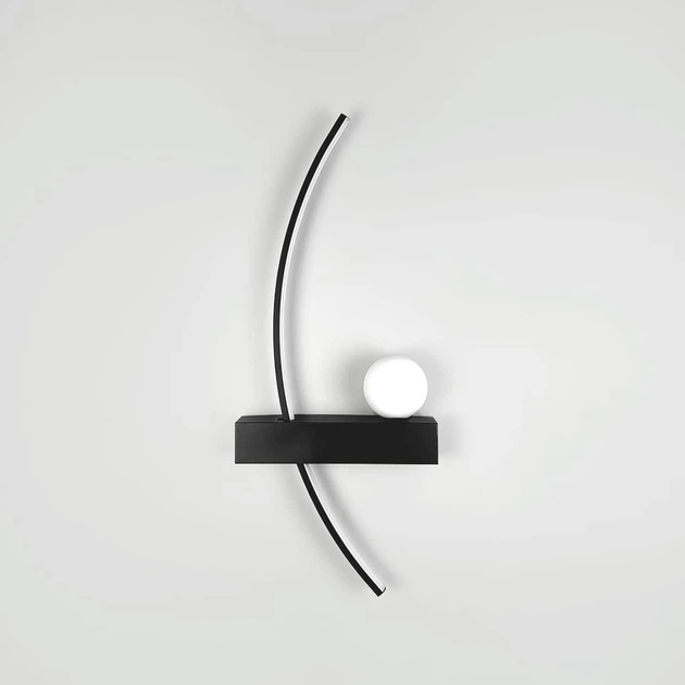 Чорне дугове бра з білим плафоном у правому корпусі 60 см | Line F | Арт. WJ113/600 R BK (прав)