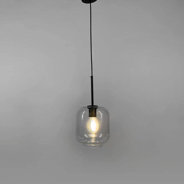 Підвісний світильник з прозорим плафоном та чорним корпусом