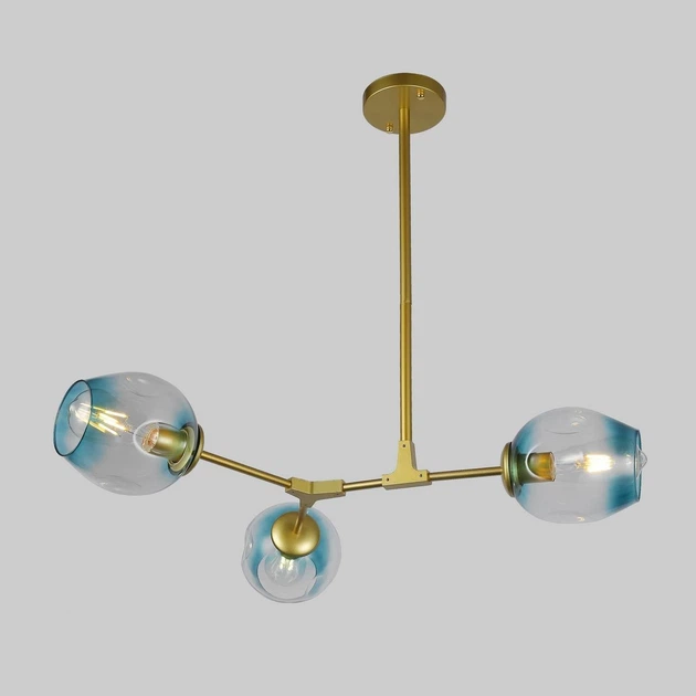 Золота люстра на 3 блакитних молекули (52-L7731-3 GD+BL)