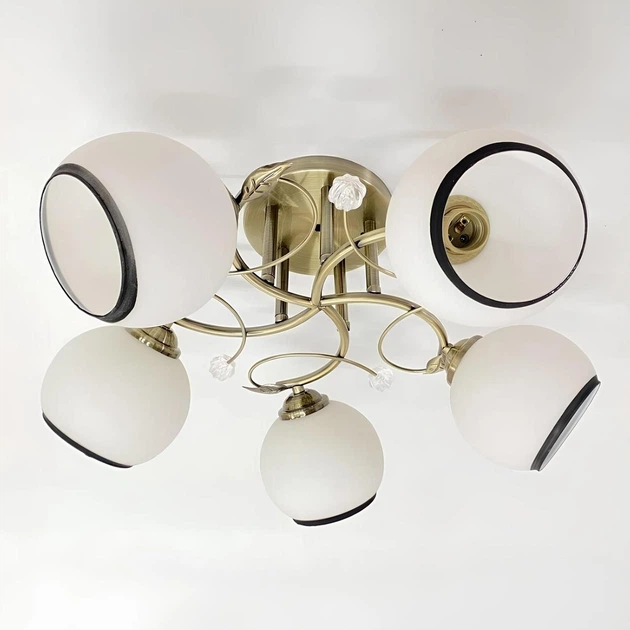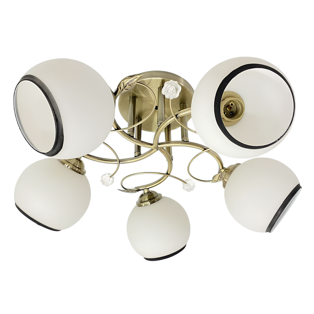 Люстра стельова на 5 білих плафонів із чорною окантовкою під лампу Е27 каркас бронзовий VALESO 6220J/5