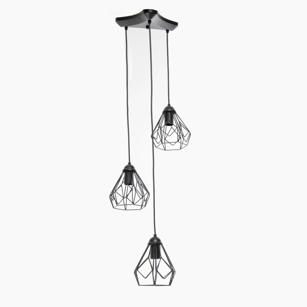Чорна стельова люстра на 3 пірамідки в стилі лофт (56-XPR220F-3 BK (400))