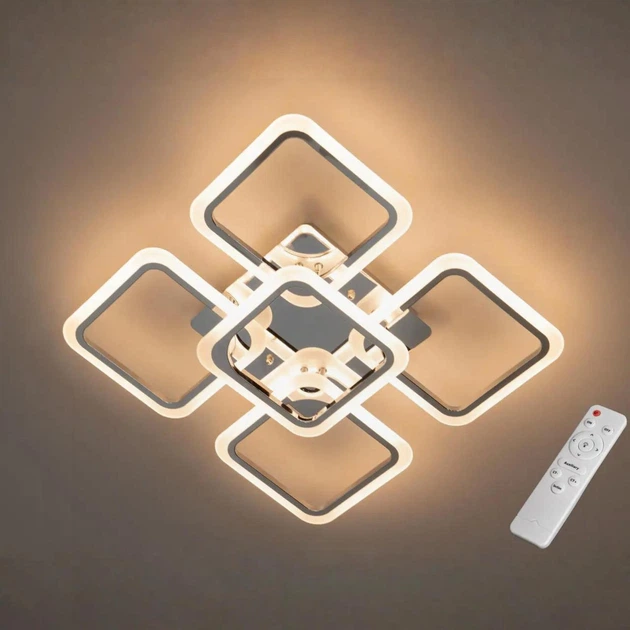 Стельова світлодіодна люстра 90W з пультом Diasha з квадратними плафонами 3200-6500К хром IP20