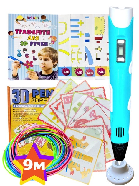3D-ручка з екраном з Еко Пластиком PLA (9 метрів) Блакитна 3D PEN 2