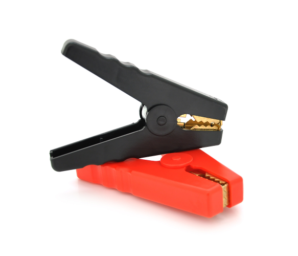 Набір акумуляторних затисків крокодилів чорний + червоний 500А 130мм (щільний гумовий, рифлений кожух), з мідним покриттям,