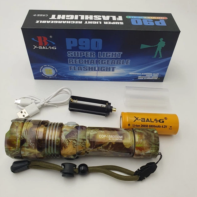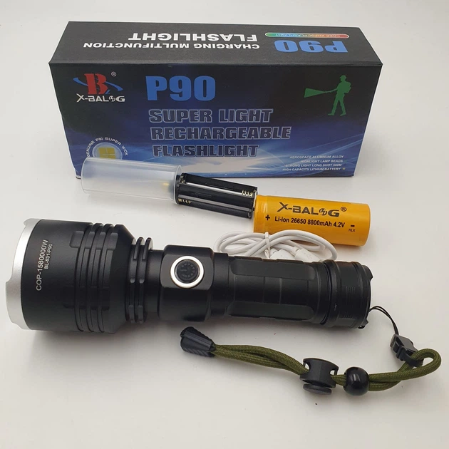 Ліхтар Ручний Акумуляторний Світлодіодний Police X-balog Bl-1827-p90 Переносний З Usb Заряджанням Оптичним Зумом Металевий К