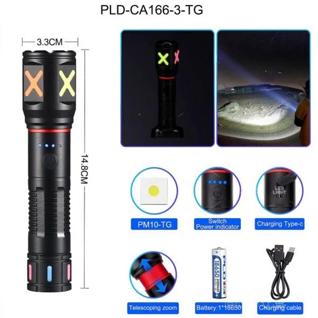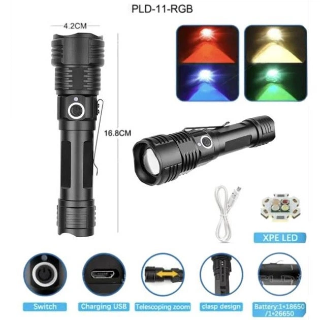 Ліхтар ручний акумуляторний PLD-11-4XPE(RGB), Кишеньковий ліхтар із usb зарядкою