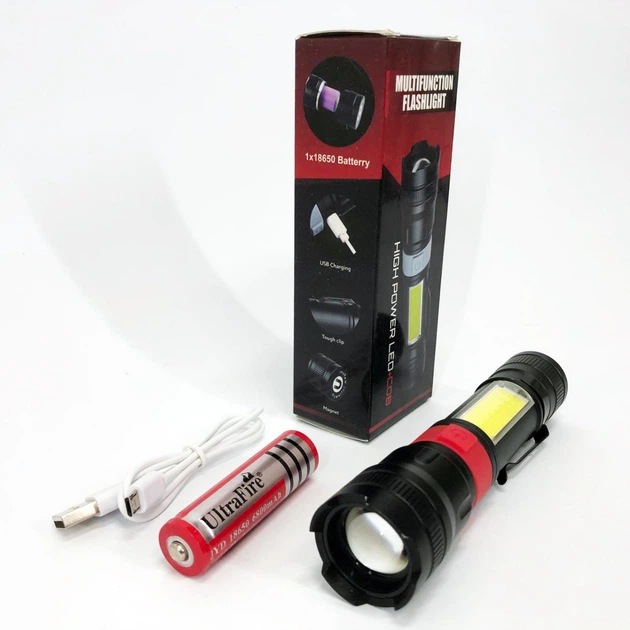 Ліхтар ручний акумуляторний PL-826-P70-COB(white+red), Портативний точковий ліхтар, Похідний ліхтарик