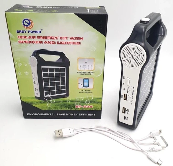 Радіо-ліхтар із сонячною панеллю EASY POWER EP-036 Bluetooth Power Bank станція (знімні АКБ 2*18650)