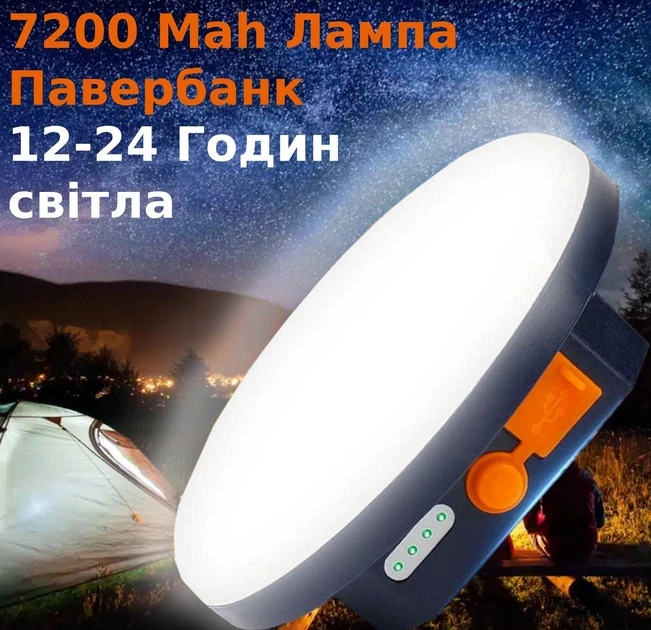 Кемпінгова LED лампа ліхтар із вбудованим повербанком 30W 7200 mAh