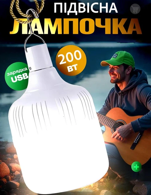 USB LED Лампа Ліхтар 200 W Світильник Акумуляторний Нічник з Підвісом Лампочка Світлодіодна Бездротова Кемпінгова Похідна Ту