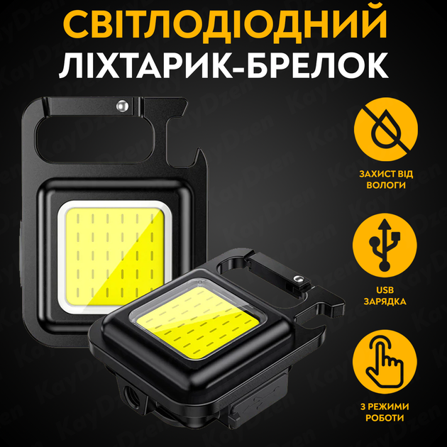 Світлодіодний LED ліхтар COB Rechargeable Keychain Lamp Багатофункціональний світлодіодний ліхтарик-брелок з карабіном