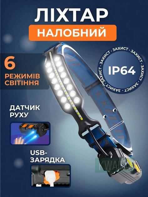 Налобний LED ліхтар із датчиком руху, фара на лоб