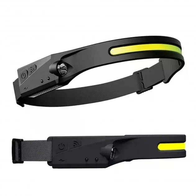 Налобний LED+COB ліхтар із сенсором руху, червоним світлом і акумулятором 1200 мАгод Чорний 54012361