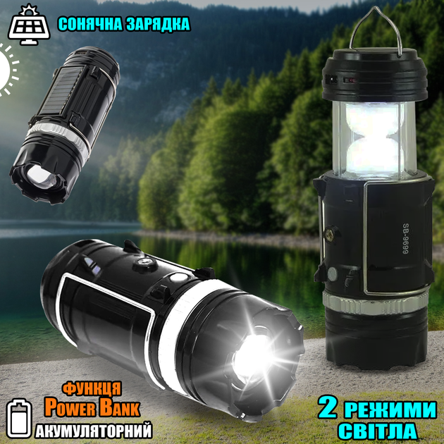 Кемпінговий світильник-ліхтар із сонячною панеллю XBalog 9699-1600 mAh Camping Lights акумуляторний, функція Power Bank