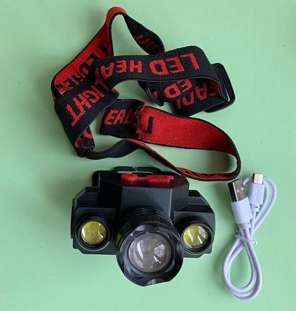 Ліхтар на лоб червоне світло SOS режим робота на резинці USB акамулятор кх-213 Тype-c