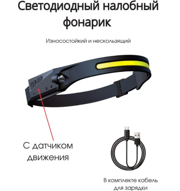 Налобний Ліхтар із сенсором LY-801 COB+XPE+2LED від Type-C Пластик