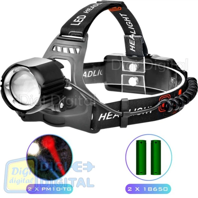 Ліхтар налобний PLD-A12-TG 2x18650, Ліхтарик налобний потужний, Налобний прожектор, Ліхтар для риболовлі