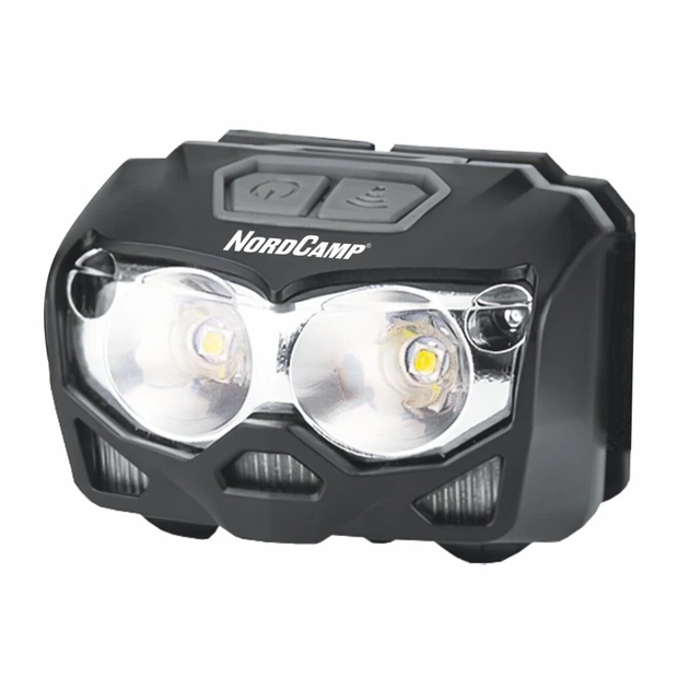Ліхтар налобний Nord Camp 500Lm, 2x5W CREE XTG, 1200mAh/3xAAA, з сенсором білий/червоний NC30900