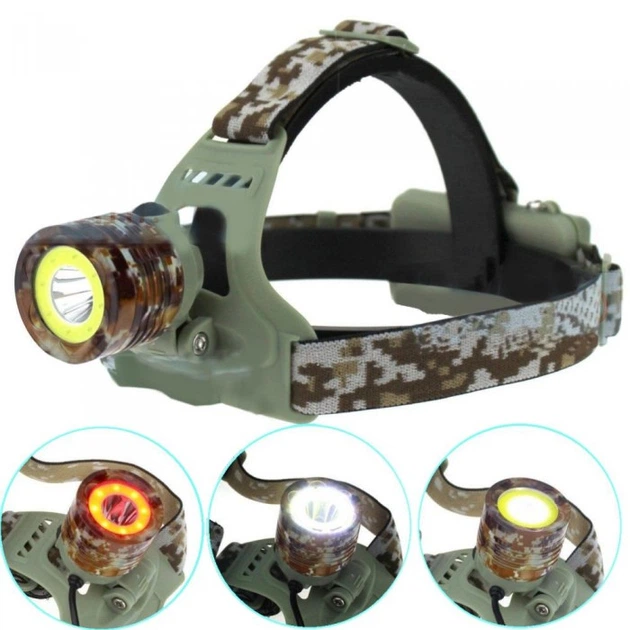 Фонарик налобний CH-002M-T6 камуфляж, 2х18650, signal light, zoom, ЗУ Type-C, Box