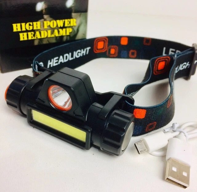 Ліхтар налобний HeadLight світлодіодний акумуляторний microUSB Чорний