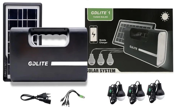 Компактна сонячна станція GDLITE GD-1 із сонячною панеллю для освітлення й заряджання ґаджетів домашньої техніки