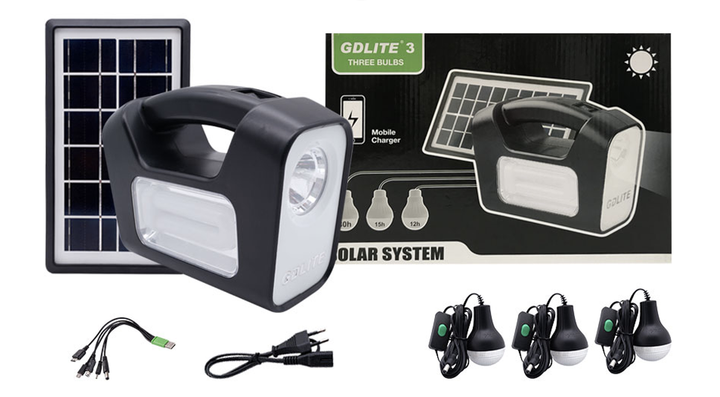 Портативна зарядна станція GDLITE GD-1 із сонячною панеллю та 3 лампочки ліхтар USB