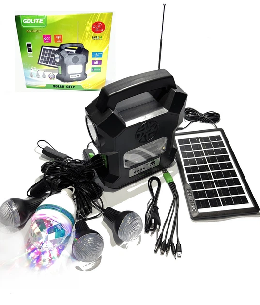 Сонячна зарядна станція GDlite GD-1000A зі світильником та лампочка, автономний ліхтар, Power bank