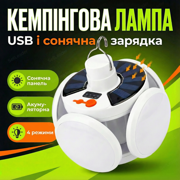 Ліхтар акумуляторний BL 2029 кемпінговий лампа сонячна батарея USB зарядка для намету світильник 4 режими
